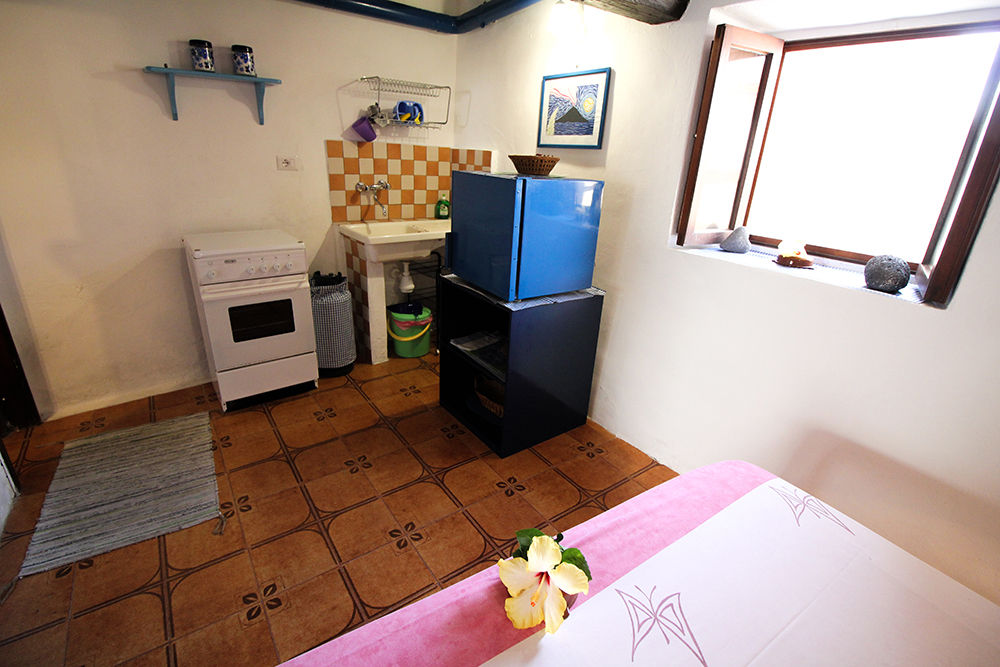 Gia.no casa Nido;is a ground floor studio flat about 40 sq m. with internal window,kitchenette and small bathroom.there is one king size and one single bed.it is situated 50-60 mt. from piazza dell’isola,in a quiet,central area. The sea is 400 metres away.there is not external area (garden-terrace),so there is not panoramic view.The entrance is situated on the “via pola”.
