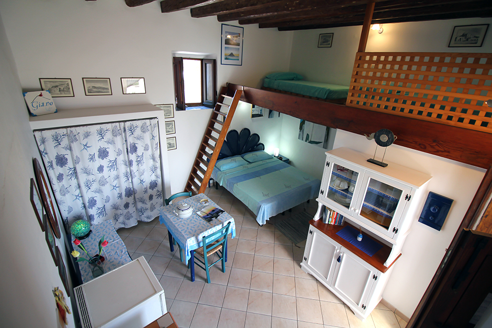 Gia.no Bifronte 1 & 2:studio apartments 25 sq mt,each independant from one other,with there own kitchenette and bathroom.(for 2-3 people)each is equipped with a large terrace with panoramic views of the mesmerizing “strombolicchio”,both have tables chairs and deck chairs.
